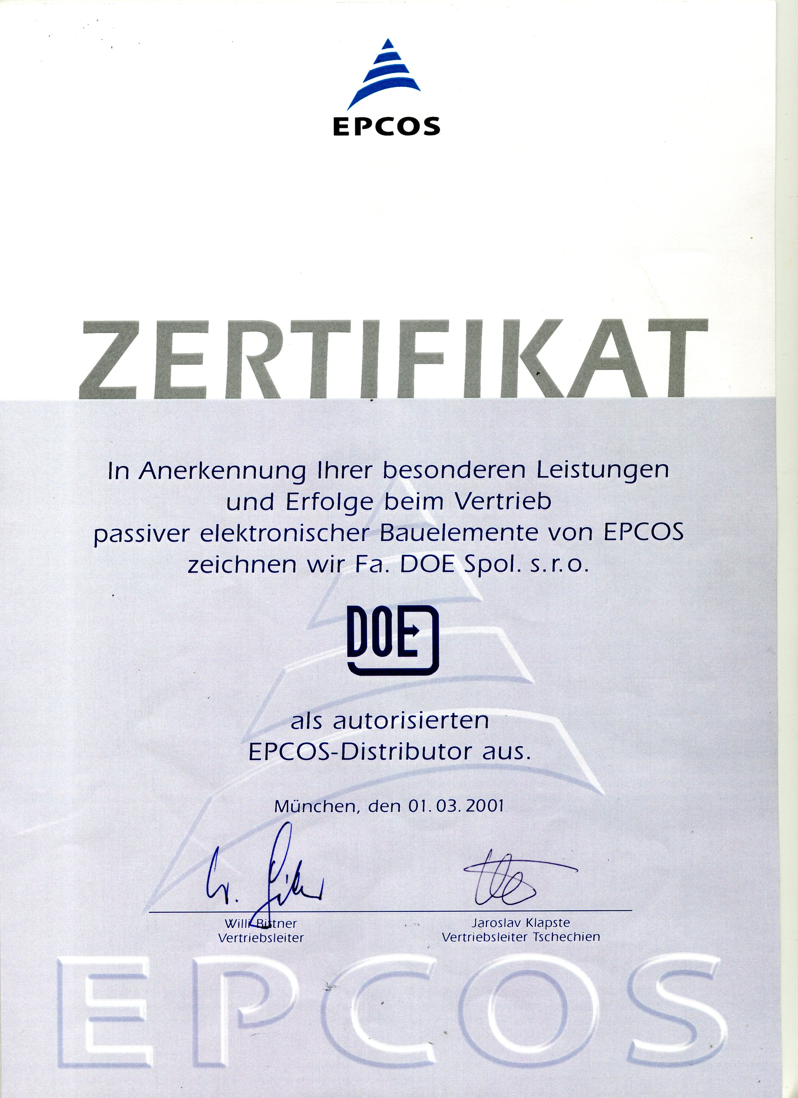 Jsme dlouholetým autorizovaným distributorem výrobce EPCOS, máme připojení do všech 22 výrobních továren na třech kontinentech a můžeme Vám obratem sdělit dodací termíny všech cca 18000 druhů elektronických součástek, které EPCOS vyrábí,i jejich balicí jednotky a ceny. Poskytujeme technickou poradenskou činnost.